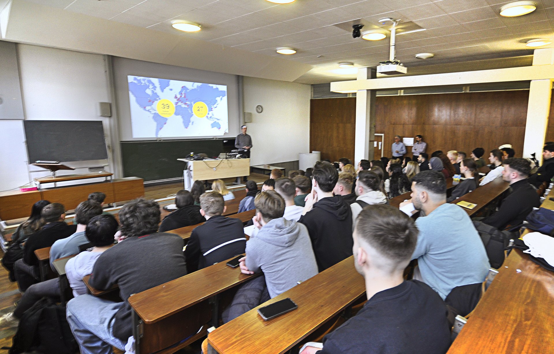 „Natürlich werden hier auch Herausforderungen auf Sie zukommen“, erklärte Studiendekan Marcus Schöller. „Aber glauben Sie mir, man darf hier auch Spaß haben. Hier entstehen lebenslange Freundschaften. Aber diese Atmosphäre lebt auch davon, dass Sie sich als Studierende an der Hochschule engagieren.“