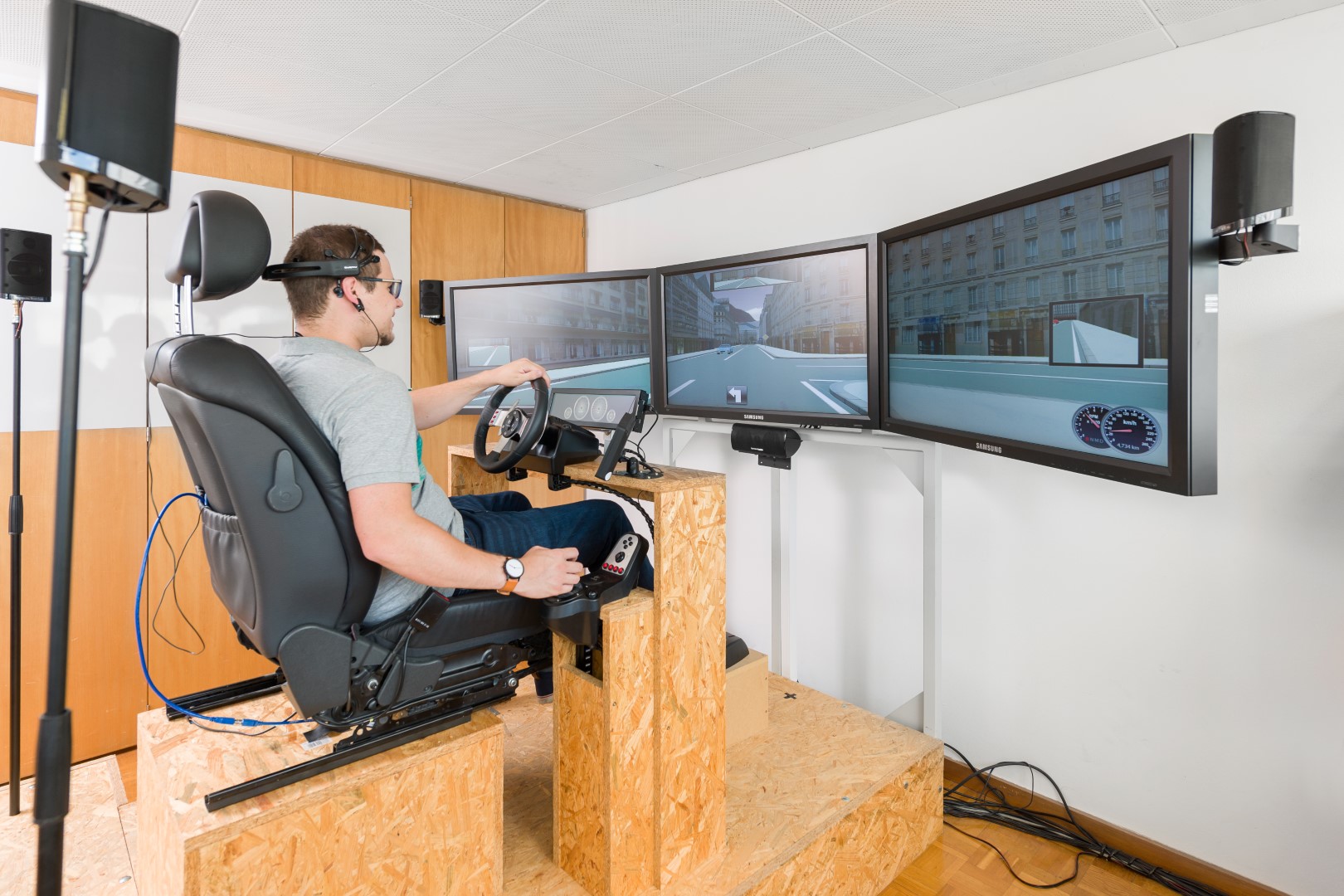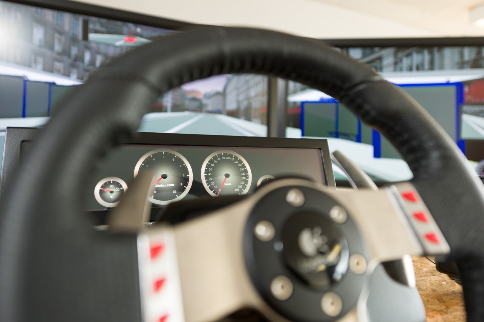 Im Future Mobility Labor werden fahrerzentrierte Assistenzsysteme geprüft und weiterentwickelt. Wir arbeiten hierzu u.a. mit einem Fahrsimulator, der das Fahrverhalten in realistischen 3D-Szenarien analysiert. Im Simulator kann nahezu jede Reaktion erkannt und ausgewertet werden, Emotionen werden durch Sensoren ausgezeichnet. Die Fahrsicherheit wird verbessert und der Verbrauch verringert.