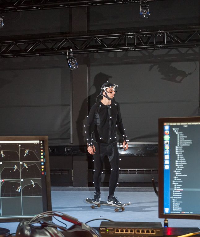 Das Motion Capture Lab ermöglicht detaillierte Aufnahmen und Simulationen menschlicher Bewegung. Einzelne Personen, aber auch ganze Menschengruppen in Bewegung können so digitalisiert werden. Die Bewegungen werden intelligent verarbeitet, eine 3D-Scanner-Technologie unterstützt dabei die weitere Simulation bzw. Animation von Körpern und deren Bewegungen.