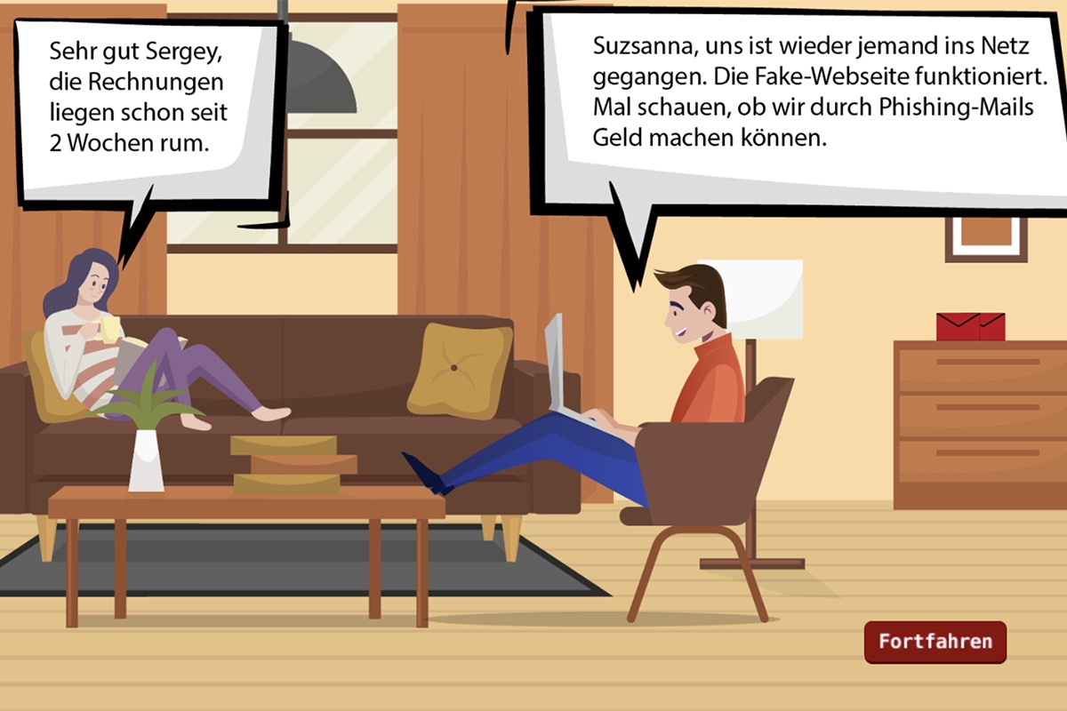 Serious Game zum Thema Phishing und sicheres Verhalten bei Geschäftsprozessen. Entstanden als Bachelorarbeit