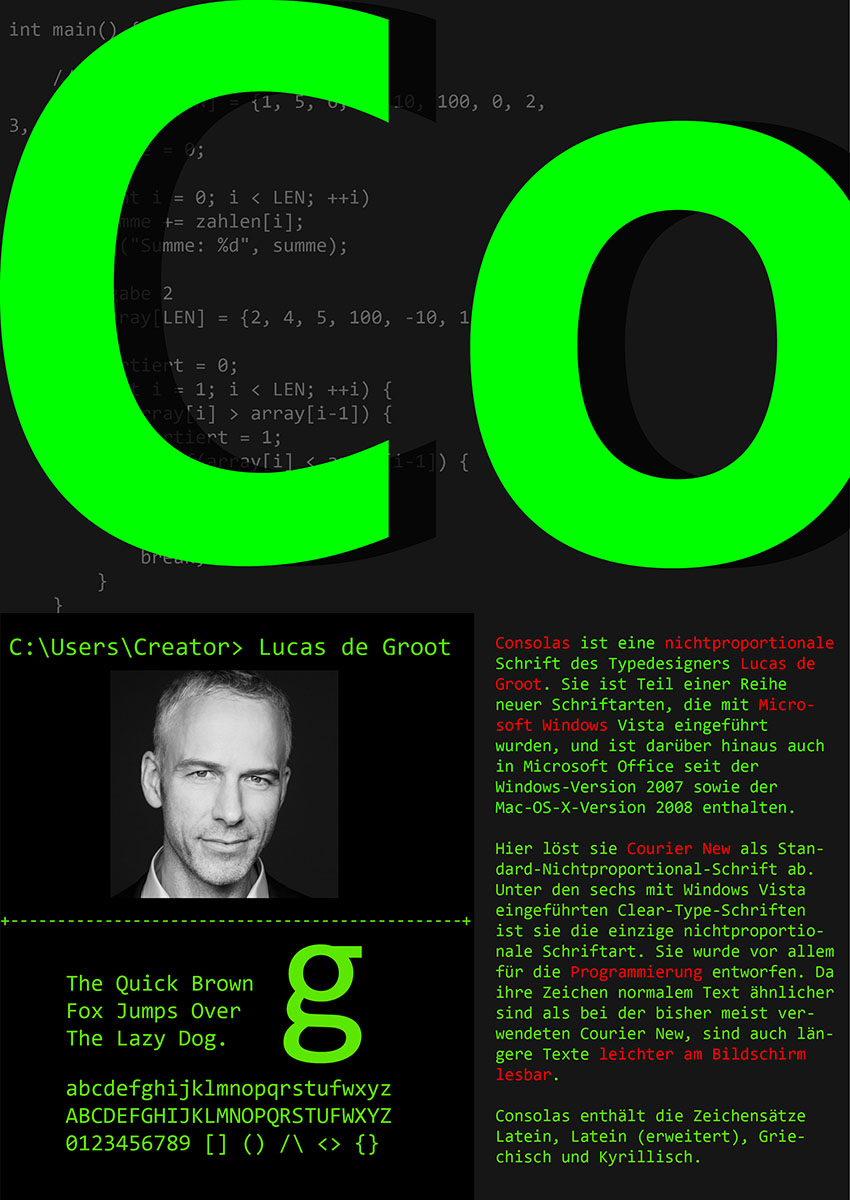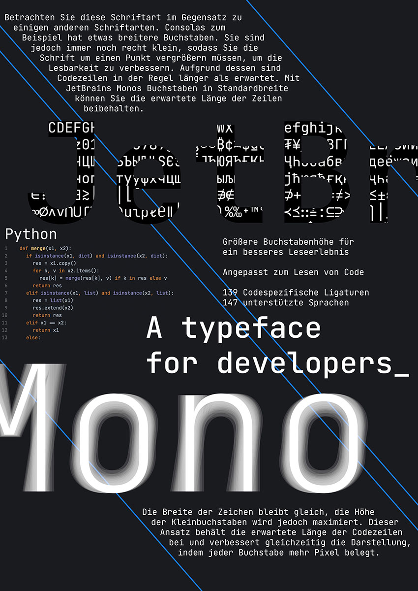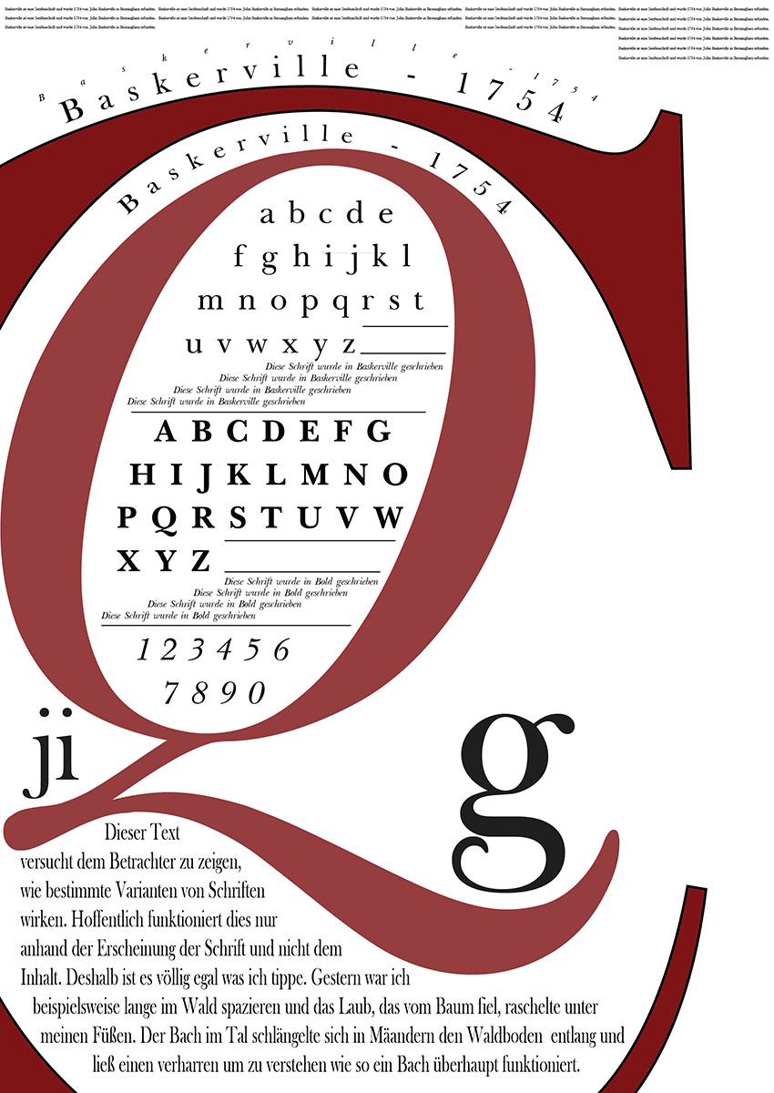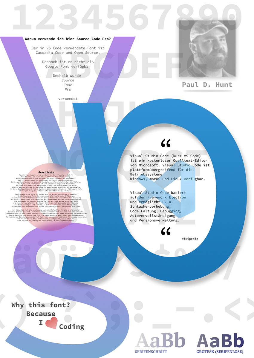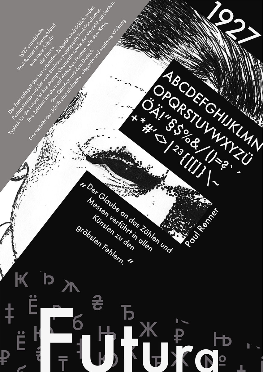 Im Modul Digital Media Design lernt man die Grundlagen der Gestaltung: von Umgang mit Formen, Komposition und Farben über Typografie, Illustration und Fotografie bis hin zu den Themen Webdesign, bzw. UX/UI. Eine der Aufgaben ist die Gestaltung eines Plakats vollständig aus Schriftelementen. Davor steht die Recherche - welchen Stil und welche Geschichte hat die Schrift? - und die Konzeption, also die zum Stil der Schrift passenden Gestaltungselemente. Die Bandbreite ist groß, von klassischer Futura bis hin zur neuen Coding-Schriften ist alles dabei.