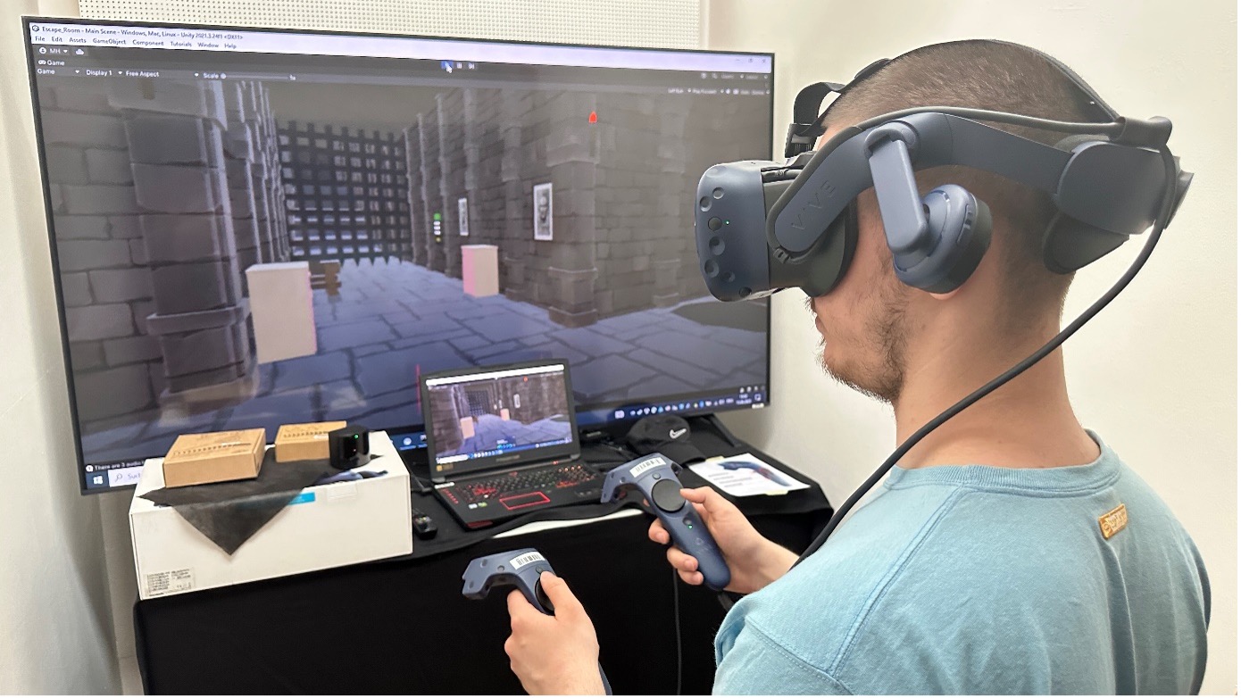 Sie wurden enführt! Erleben Sie gemeinsam mit einem Freund ein aufregendes Abenteuer: nur mit gegenseitger Hilfe und scharfem Nachdenken ist eine Flucht möglich. Schaffen Sie es, gemeinsam auszubrechen oder bleiben Sie für immer in Gefangenschaft? In diesem Escape VR-Room ist ein Spieler im Keller eingesperrt und kann nur mithilfe von seinem Freund, welcher sich im realen Raum befindet, Rästel lösen um zu entkommen. Das VR-Spiel wurde mittels Unity entwickelt.