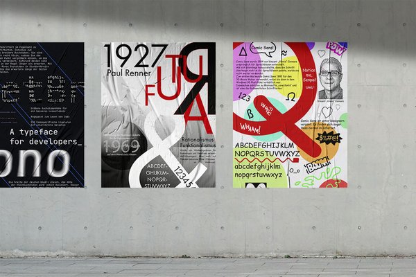 Typografie-Poster, von Modern Classics wie Roboto bis zur allseits gehass/liebten Comic Sans. Entstanden im 1. Semester / Modul Digital Media Design