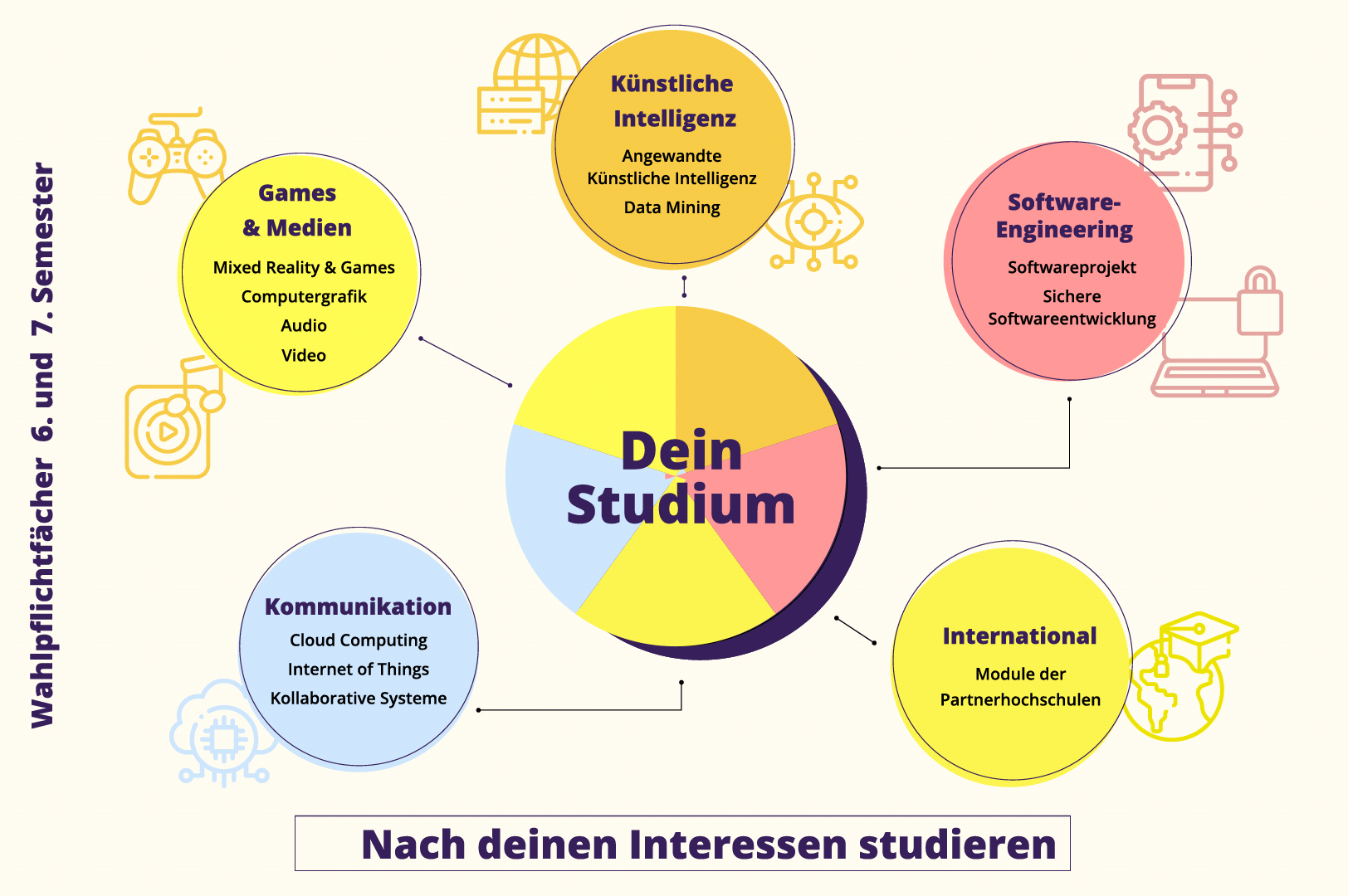 Im sechsten und siebten Semester kannst du aus einem großen Angebot an Wahlfächern auswählen.